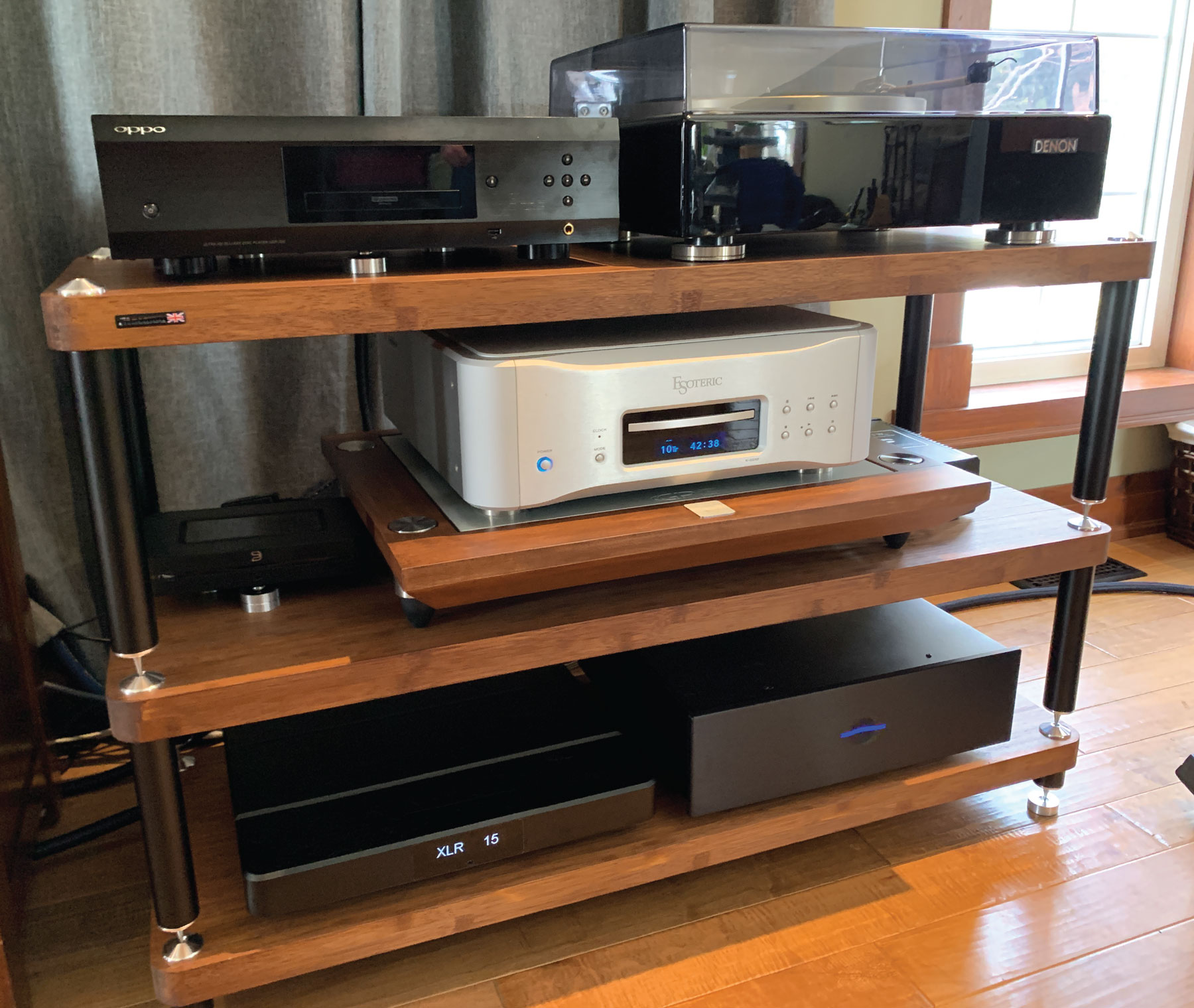 Out come the isolation bearings from my new Esoteric K03-XD cd player and I slide under the Audio Nut GP3 platform. This platform is not small and you may need to reconfigure your set up to accommodate this. Right away, my wife and I notice a difference. I don’t understand the engineering behind this, yet that is not my concern, that is for Tough Nut Audio to figure out. I do know, this is a very nice improvement for your source components such as CD players and Turntables. This GP3 is not intended for your 20 year old sony CD player. This product is for those in the 90th percentile of their audio journey. If you have a passion for music, the GP3 could be waiting for you at the end or your journey.